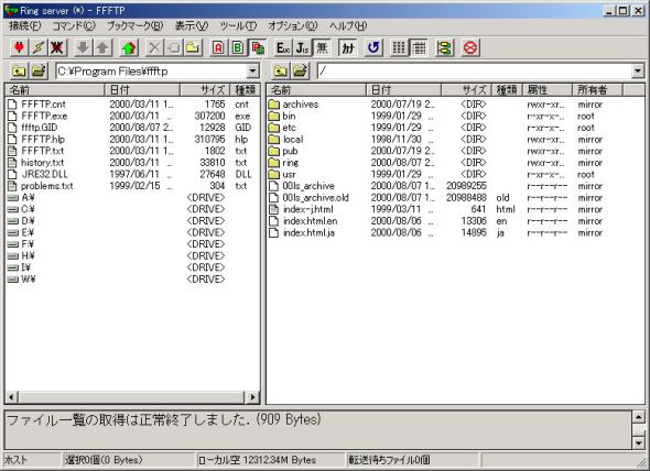 | 左下に「ファイル一覧の取得は正常終了しました」と表示されれば接続成功です。 |